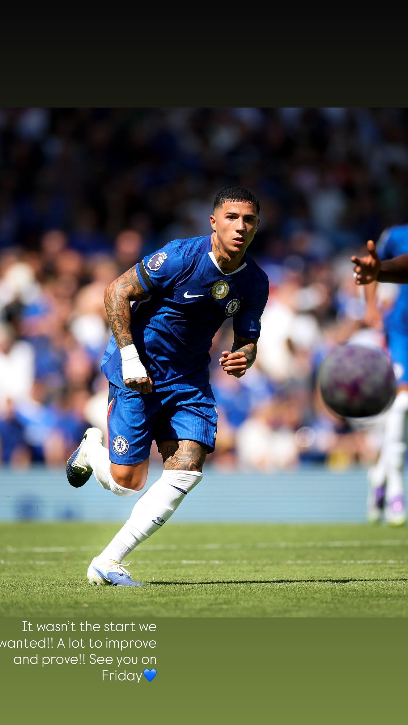 英超联赛 第1轮,切尔西在斯坦福桥0-0与水晶宫握手言和。赛后,切尔西中场球星恩佐-费尔南德斯更新了社交媒体动态,他说道:“这不是我们想要的开局!!还有很多需要改进和证明的地方!!我们周五见吧。”