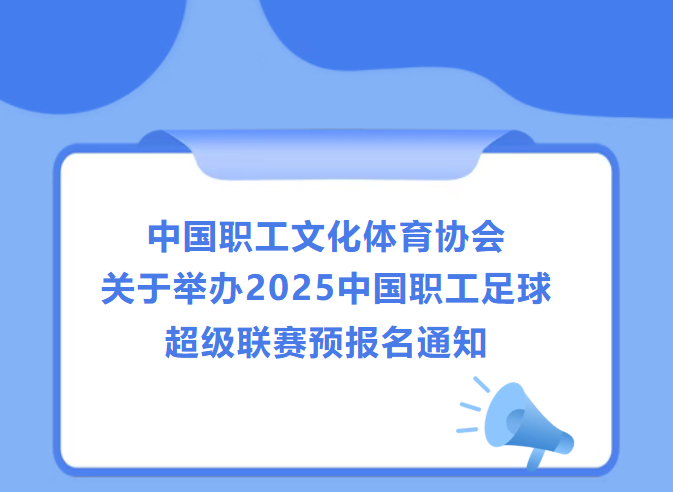 为深入贯彻习近平总书记关于群众体育工作的指示精神,落实国家足球工作会议精神以及全总《关于加强新时代职工文化建设的指导意见》的要求,推动职工足球运动与全民健身相结合,搭建基层单位文化体育交流平台,在全国总工会宣教部指导下,中国职工文化体育协会等单位将联合举办2025中国职工足球超级联赛,此项赛事是2024年(大连)全国职工足球邀请赛的延续、升级。请有意向参加职工足球赛的企事业单位、县区工会积极报名参赛。具体事宜通知如下: